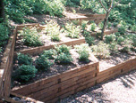 Timber retaining walls used to be the material of choice for building retaining walls. Now, most customers choose stone over timbers because stone will hold up better over time. Still, some homeowners prefer the natural look of timbers. Click here to see a gallery of our timber retaining walls. |