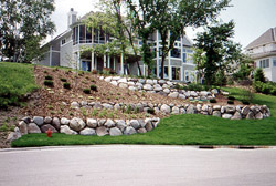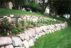 In addition to residential and commercial retaining walls, we also do shoreline and creek reconstruction. Because we have are able to bring our equipment in on barges, we handle waterfront projects that other companies just can't do. Over the years we've built attractive rip-rap, rock and boulder seawalls on shorelines along the Mississippi, the St. Croix River and Minnehaha Creek. Our seawalls are built to last, protecting your home from the water while keeping water and wildlife safe from runoff and erosion.